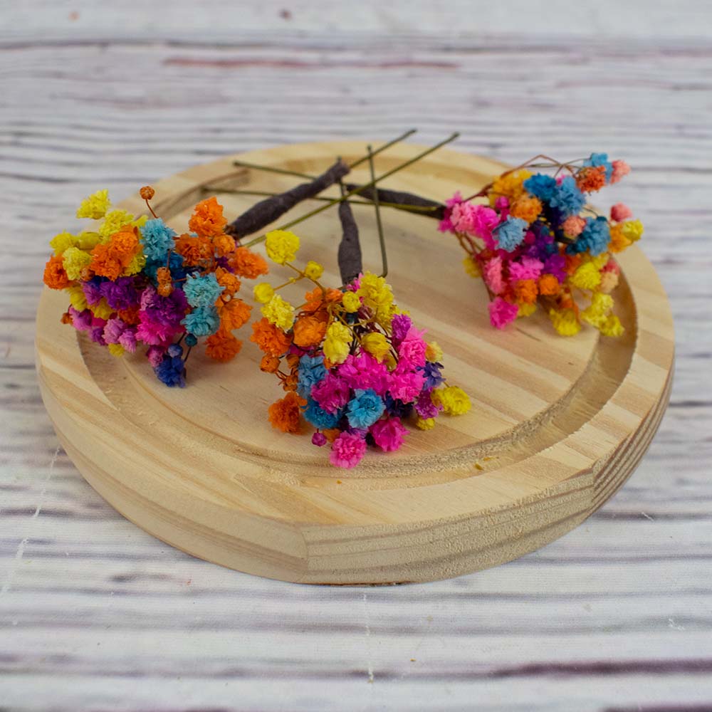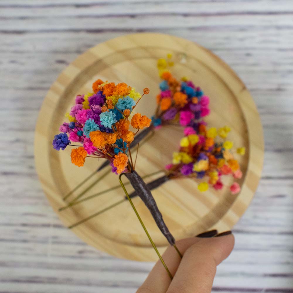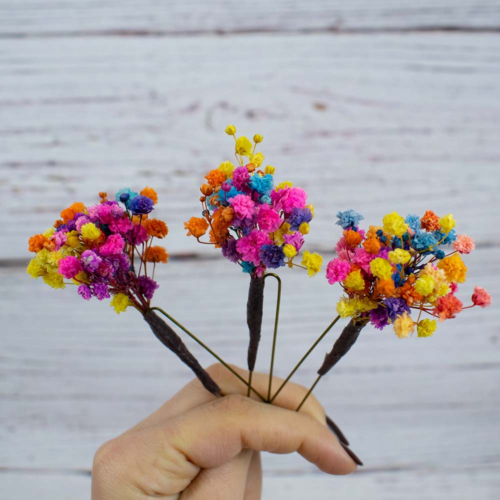 Estas horquillas de flores preservadas están confeccionadas por paniculata preservada multicolor.