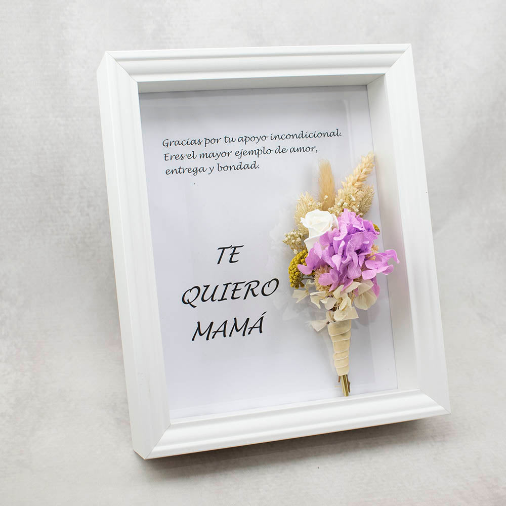 El cuadro de flor seca no necesita agua y no debe recibir luz solar directa, ya que puede perder su color original.