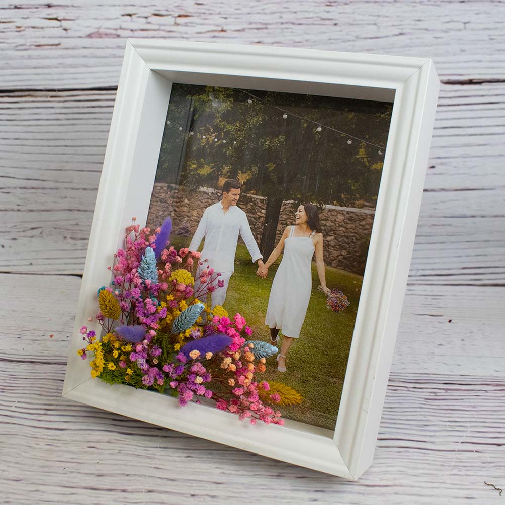 Que mejor manera de recordar tu boda (y tu ramo) con un marco de fotos con las mismas flores que te acompañaron el día de tu unión.