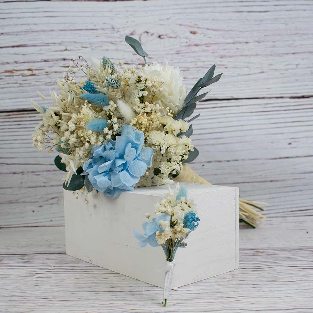 - 3 horquillas florales: confeccionadas con las mismas flores del ramo, para un peinado armonioso.