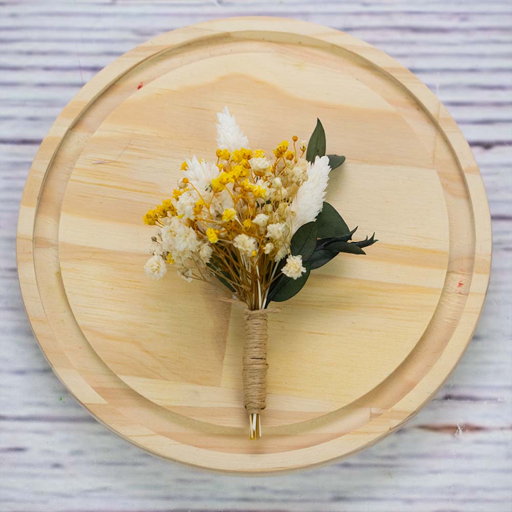 Hrmos confeccionado este prendido de flores preservadas para bodas silvestres y veraniegas.
