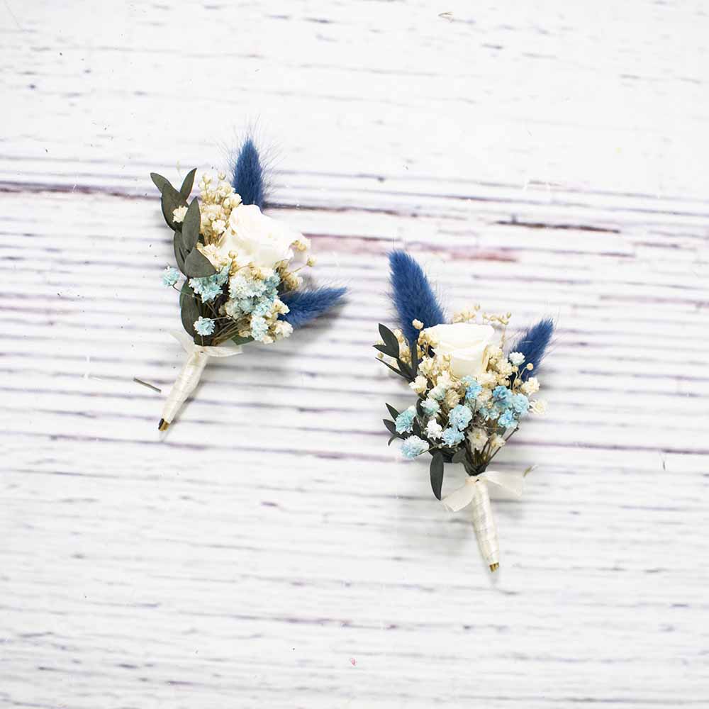 Los prendidos de nuestro taller están hechos con flor seca y preservada. Los hacemos personalizados teniendo en cuenta el ramo y estilo de la novia.