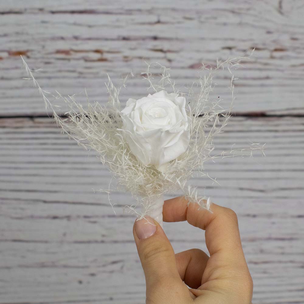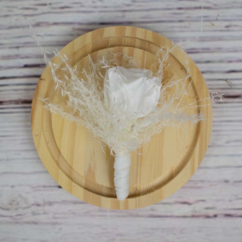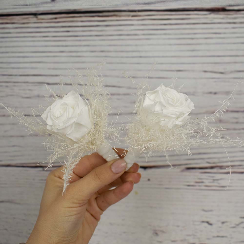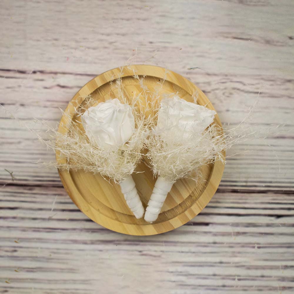Los prendidos de nuestro taller están hechos con flor seca y preservada. Los hacemos personalizados teniendo en cuenta el ramo y estilo de la novia.